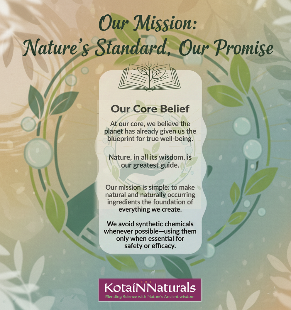 We don’t settle for the industry norm of chemical-heavy formulations. Instead, we turn to nature’s abundant pantry, crafting products with ingredients that are as pure, simple, and unrefined as possible. Our intention is clear: to reduce unnecessary additives and choose plant-based, effective alternatives that honor your health and the planet. We’re here to ensure that what you put on your body is not only effective today, but safe for the long run.